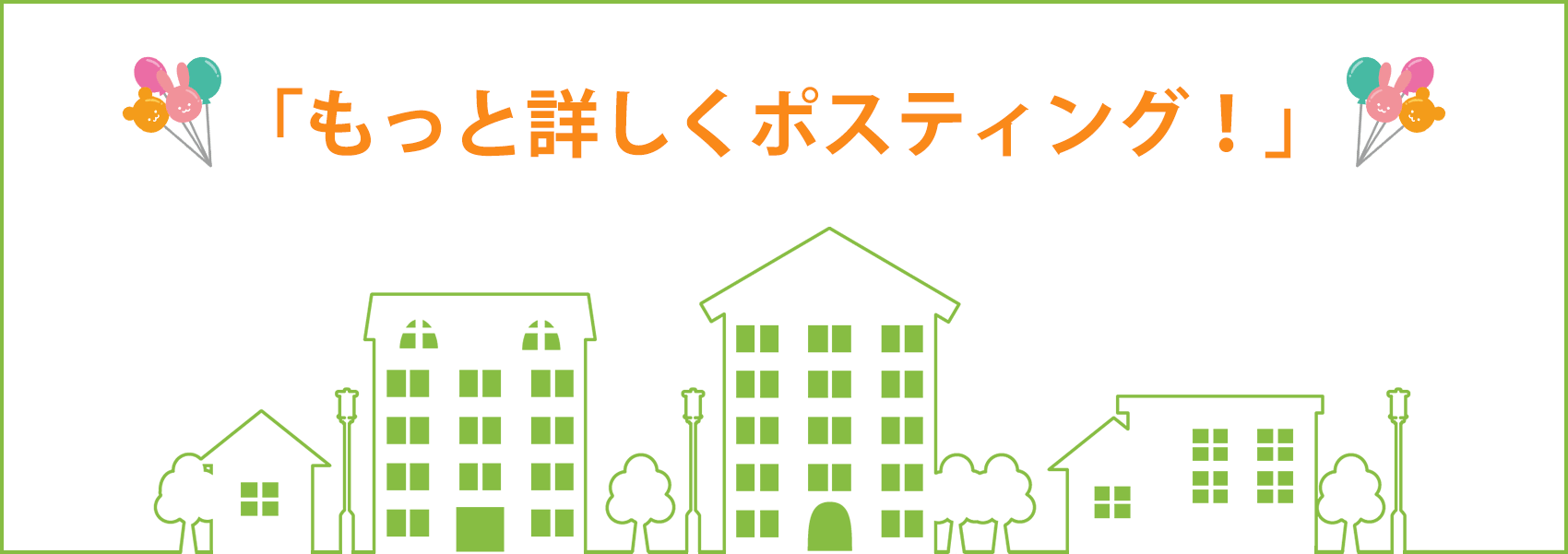 ポスティング期間は、短期・中期・長期と どの配布スタイルでもお受けすることは可能です。   例えば・・ 短期・・1週間で配布して欲しい。 中期・・2~3週間で配布して欲しい。 長期・・1 …